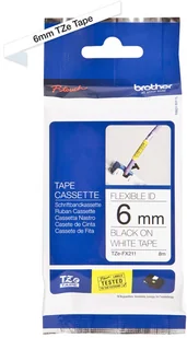 Taśma identyfikacyjna Flexi ID - TZe-FX211 firmy Brother. Nośnik zaprojektowany w celu identyfikacji kabli, przewodów, rur PCV lub innych produktów o cylindrycznym kształcie. Specjalny mocny klej taśmy TZe-FX211 zapewnia jej trwałość. Etykiety z czarnym nadrukiem na białym tle. Taśma kompatybilna z drukarkami P-touch, które posiadają logo TZ lub TZe na pokrywie taśmy.