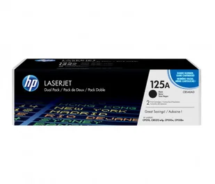 HP 125A zestaw 2 oryginalnych wkładów z czarnym tonerem LaserJet (CB540AD)PrzeglądDwupaki kaset z tonerem HP 125A LaserJet odznaczają się lepszym stosunkiem ceny do wartości niż kasety pojedyncze. Profesjonalna jakość druku w niższej cenie niż w przypadku kaset pojedynczych. Zagwarantuj produktywność i skróć czasy przestoju, przechowując dodatkową kasetę z tonerem w zasięgu ręki. Wykorzystaj lepiej swój budżet. Oryginalne dwupaki kaset HP LaserJet oferują lepszy stosunek wartości do ceny niż pojedyncze kasety.