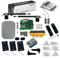 Zestaw FAAC ALFA 414 do przydomowych bram skrzydłowych o długości skrzydła do 3 m zawiera: