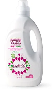 Prawdziwy koncentrat! Na jeden cykl standardowego prania wystarczy ok. 25 ml płynu - tj. około 2/3 nakrętki. Ekologiczny, hipoalergiczny płyn do prania dla dzieci i niemowląt SWONCO zawiera tylko naturalne składniki. Bogata receptura, wzbogacona o olejek aloesowy o miłym i świeżym zapachu, pomaga usuwać plamy, nie niszcząc tkaniny.