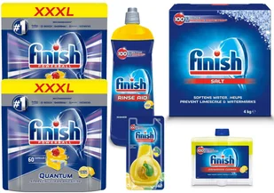 Zestaw Finish Quantum Tabletki Zestaw zawiera: 2x Finish QUANTUM tabletki do zmywarki 60 sztuk LEMON 1x 1x Finish Sól do Zmywarki Zmiękczająca Wodę 4kg 1x Finish Zapach do zmywarki Lemon 1x Finish Nabłyszczacz do Zmywarki 800ml Lemon 1x Finish Płyn do czyszczenia Zmywarek Lemon 250 ml Finish QUANTUM tabletki do zmywarki 60 sztuk LEMON Finish Quantum to wielofunkcyjne żelowe kapsułki do zmywarek, które działają aż w 14 obszarach. Usuwa nawet najtrudniejsze zabrudzenia już przy pierwszy użyciu. Eliminuje uporczywe plamy tłuszczu, przebarwienia po kawie czy herbacie oraz przypalone resztki jedzenia. Zapewniają najwyższą możliwą czystość i blask.