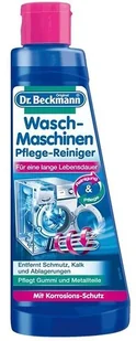 Dr Beckmann Waschmaschinen to płyn do czyszczena i ochrony pralek, który zapobiega odkładaniu kamienia, zanieczyszczeń i głeboko osiadających bakterii w automacie. Usuwa brud wewnątrz bębna i pralki, usuwa resztki proszku z pojemnika i eliminuje nieprzyjemne zapachy.
