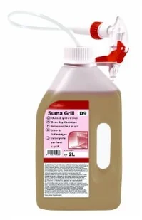 Suma Grill D9 jest bardzo silnym, alkalicznym preparatem do okresowego czyszczenia uporczywych zabrudzeń spowodowanych głównie nagromadzeniem się tłuszczu oraz zwęglonych resztek żywności na powierzchni pieców, grilli oraz smażaln