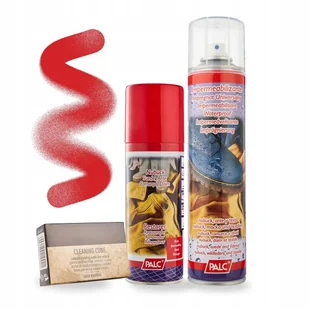 Czerwony Spray Renowator Gumka do Zamszu i Impregnat 400 ml Palc Zestaw 3w1 W skład zestawu wchodzi: SPRAY DO ZAMSZU I NUBUKU PALC 200 ml CZERWONY GUMKA DO C...