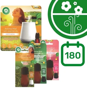 AIR WICK Aroma Waporyzator aromatyczny zestawem do napełniania (4×20 ml) to najnowocześniejszy odświeżacz powietrza do idealnie pachnącego domu przez 180 dni z możliwością wyboru intensywności zapachu. Urządzenie działa tylko wtedy, gdy jesteś w domu, oszczędzając w ten sposób energię baterii i zapach.