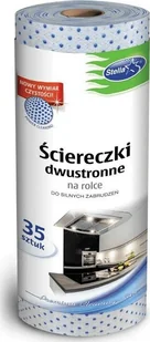 Wyjątkowo praktyczne, miękkie i chłonne ściereczki dwustronne na rolce do silnych zabrudzeń. Gładka strona służy do polerowania, a druga, nakrapiana- do usuwania silnych zabrudzeń. Gumowe kropeczki pozwalają usunąć nawet najtrudniejsze zabrudzenia, jednocześnie w trakcie polerowania powierzchni gładką stroną nakrapianie znacząco ułatwia trzymanie ściereczki. Unikalna struktura włókien gwarantuje doskonałą chłonność i ponadprzeciętną wytrzymałość. Ściereczki nie pylą, nie zostawiają włókien, nie rysują czyszczonych powierzchni. Idealnie nadają się do wycierania i mycia armatury kuchennej, stołów i blatów, glazury, naczyń itp. Świetnie sprawdzą się do osuszania owoców, warzyw i mięsa. Do użycia zarówno na sucho jak i na mokro. Bardzo wygodna forma- ściereczki są nawinięte na rolce, co pozwala na oderwanie odpowiedniej ilości "listków". Perforacja pozwala na szybkie i łatwe oderwanie pojedynczej ściereczki. Są wielokrotnego użytku, można prać je w pralce. Jedno opakowanie zawiera 35 sztuk listków o składzie: 50% wiskoza, 50% poliester. Kolor: jasnoniebieski, granatowe kropki.