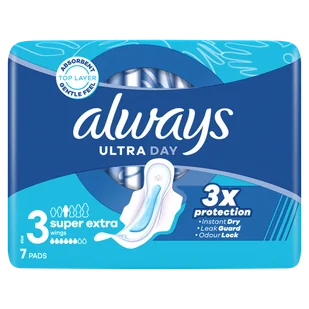 Produkt Always Ultra Day, podpaski ze skrzydełkami, Super Extra, 7 sztuk do kupienia w Gemini. Podpaski Always Ultra Day Super Extra w rozmiarze 3 zapewniają skuteczną ochronę i komfort każdego dnia menstruacji. Dzięki ...