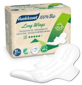 W opakowaniu znajduje się 10 Biodegradowalnych podpasek ze skrzydełkami Long Vuokkoset.