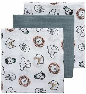 Meyco Meyco 452019 Mull/muślinowa pielucha zestaw 3 szt, 70 x 70 cm ANIMAL-UNI Stone zielono-biała