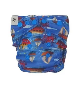 MATERIAŁY Pieluszka z kieszonką jest uszyta z dwóch rodzajów materiałów: nieprzemakalnego PULu i niebielonej bawełny. PUL to miękka, wodoszczelna dzianina. Jest laminowana od wewnątrz i kolorowa na zewnątrz. Bawełna jest niebielona, rozciągliwa (co ułatwia umieszczenie wkładu wewnątrz), delikatna dla skóry Wszystkie materiały pochodzą z Polski.
