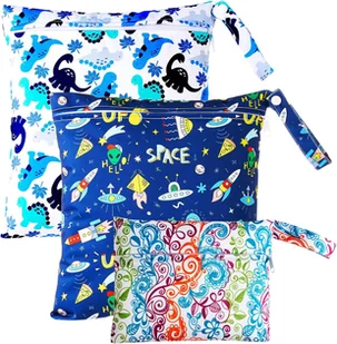 Wysokiej jakości torby wielokrotnego użytku Pinowu są wykonane w 100% z poliestru z wodoodporną powłoką chroniącą przed wilgocią. Gładkie zamki błyskawiczne skutecznie zapobiegają wyciekaniu zawartości. Zestaw składa się z dwóch toreb na pieluchy o wymiarach 28x30 cm na 5-8 pieluch, stroje kąpielowe, ubrania i inne, a także torby podróżnej o wymiarach 14x18 cm, idealnej na bieliznę, przybory toaletowe, skarpetki, wkładki do karmienia lub tampony. Torby Pinowu są wszechstronne - idealne jako torby na pieluchy, torby na mokre stroje kąpielowe, torby na brudne ubrania, torby kosmetyczne, torby na pranie, torebki, torby podróżne i wiele innych. Idealne do podróży, na basen, do przedszkola, na jogę, siłownię, na strój kąpielowy lub mokrą odzież.