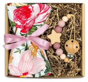 Zawieszka do smoczka + pieluszka bambusowa 60x60 Gotowy zestaw prezentowy