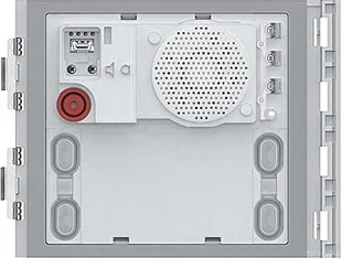Do uzupełnienia odpowiednim panelem przednim. Urządzenie jest konfigurowane za pomocą konfiguratorów lub komputera i oprogramowania TiSferaDesign. Uwaga: W przypadku korzystania z lewego rzędu przycisków wywołania na module głośnika lub 2-rzędowych modułów przycisków wywołania należy usunąć zworkę (J1) Moduł głośnika do drzwi audio Plus. Moduł głośnika do drzwi audio z 4 przyciskami wywołania do tworzenia systemów audio i wideo w technologii 2-przewodowej. Możliwość rozbudowy o szerokokątną kamerę Night & Day art.