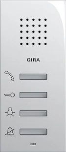 nieDostępna obsługa IFTTT: nieGłośnomówiący unifon Gira: nie 1250112: więcej szczegółów Stacja domowa natynkowa Czysta biel z połyskiem - Przyciski obsługi ze zintegrowanymi diodami LED do wyświetlania stanu. Przyciski obsługowe natynkowej stacji domowej sterują następującymi funkcjami w połączeniu z aktorem przełączającym lub podtynkowym aktorem przełączającym: