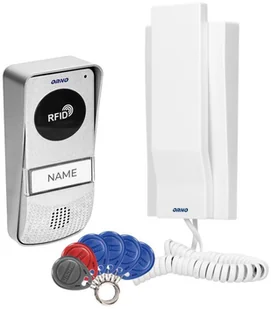 Zestaw domofonowy 1-rodzinny natynkowy z czytnikiem breloków, MIZAR Zestaw domofonowy jednorodzinny, przeznaczony do montażu natynkowego w budynkach jednorodzinnych, firmach, szkołach, przedszkolach, szpitalach, etc. Umożliwia zdalne prowadzenie rozmowy pomiędzy panelem zewnętrznym, a unifonem oraz bezpośrednie sterowanie ryglem elektromagnetycznym i bramą. Panel zewnętrzny posiada daszek ochronny. Urządzenie posiada czytnik breloków zbliżeniowych, regulację głośności, funkcję interkomu po zastosowaniu dodatkowego unifonu.