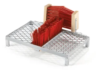 Bardzo użyteczna podczas jesieni, zimy oraz deszczowych letnich dni, kiedy buty często się brudzą; idealna do biur, klubów golfowych itp. Umieść szczotkę naprzeciwko wejścia dzięki czemu zabezpieczysz budynek przed rozprzestrzenianiem się zanieczyszczeń. Szczotka zamontowana na wytrzymałej ramie z ocynkowanej stali, szczotki są regulowane. Połącz z wysoką poręczą, dostępną jako wyposażenie dodatkowe, zapewniającą odpowiednie podparcie w trakcie czyszczenia obuwia.