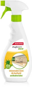 Doskonały do czyszczenia wszystkich powierzchni zmywalnych w kuchni, np. : blatu kuchennego, elementów stalowych, szklanych, ceramicznych i laminowanych, zlewu oraz lodówki w środku i na zewnątrz, itp. Posiada właściwości antybakteryjne, usunie 99,99 % bakterii, o zapachu Aloe Vera, z przyjaznymi dla środowiska substancjami na bazie składników roślinnych i mineralnych. Sposób użycia: Spryskać zabrudzoną powierzchnię i wytrzeć do sucha.