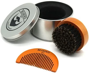 Bearded BEN szczotka do brody z włosiem dzika w wysokiej jakości pudełku do przechowywania/pudełko prezentowe, w zestawie grzebień do brody, brązowy tekowy, średnica: 6,3 cm