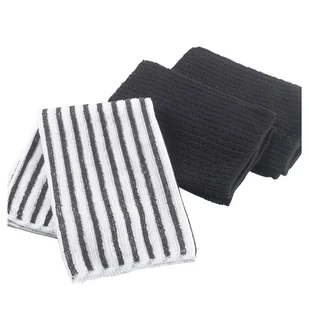 Ligne Decor 3 ręczniki do herbaty 40 x 40 mikrofibra 2 barwione / 1 paski CUISTOT antracytowy, czarny