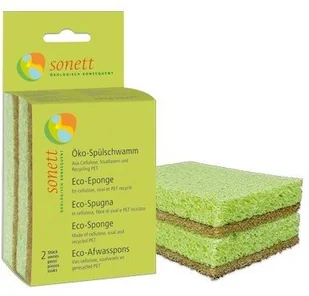 Ekologiczna gąbka do naczyń wykonana z celulozy, włókien sizalowych i pochodzącego z recyklingu tworzywa PET.