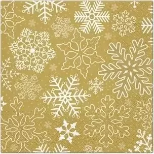 Serwetki Płatki śniegu złote 33x33cm 20szt - PAW