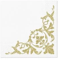 Serwetki papierowe złote zdobienia, 20 szt. Serwetki papierowe złote zdobienia Wymiary po rozłożeniu: 33 x 33 cm Liczba sztuk: 20