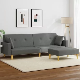 vidaXL 2-osobowa kanapa rozkładana z podnóżkiem, ciemnoszara, tkanina