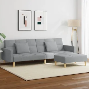 vidaXL 2-osobowa kanapa rozkładana z podnóżkiem, jasnoszara, tkanina