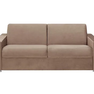 Chcesz dodać eleganckiego i wyrafinowanego akcentu do swojego wnętrza? Wybierz wygodną i estetyczną sofę rozkładaną CALITO w welurze, który subtelnie podkreśli Twoje wnętrze. Pokrycie z aksamitu nadaje sofie uczucie miękkości i luksusu. Idealna do spontanicznego przyjmowania gości lub tworzenia dodatkowej przestrzeni do wypoczynku w kilka chwil, ta sofa może być przekształcona w łóżko w mgnieniu oka. Szerokie i miękkie podłokietniki dodają komfortu podczas relaksu. Dostępna w kilku szerokościach, idealnie dopasowuje się do rozmiaru Twojego salonu. Oferowana jest również z różnymi grubościami materaca, aby zaspokoić Twoje preferencje w zakresie twardości.