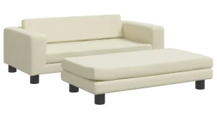 Rama wykonana z litego drewna sosnowego gwarantuje długotrwałą wytrzymałość, a cztery mocne nóżki dodają stabilności. Sofa została zaprojektowana z myślą o bezpieczeństwie najmłodszych - brak ostrych krawędzi i miękkie wypełnienie minimalizują ryzyko urazów. Dodatkowy podnóżek zwiększa komfort użytkowania, oferując dodatkowe miejsce do oparcia stóp lub zabawy. Nowoczesny design sofy Lanco dodaje elegancji każdemu pomieszczeniu i stanowi doskonałe tło dla dziecięcych zabaw. Sztuczna skóra jest łatwa w utrzymaniu czystości, co jest niezwykle ważne w przypadku mebli dziecięcych.