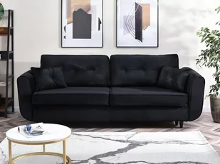 cechy do spania codziennego, z poduchami, siedzisko wypełnione formatką z pianki, pojemnik na pościel Kolorystyka kolor korpusu: czarny kolor nóżek: czarny przeznaczenie salon, lokal usługowy, biuro styl wnętrzarski glamour, współczesny Wymiary i waga długość: 100 cm szerokość: 229 cm wysokość: