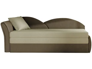 Dodatkowo posiada praktyczny schowek na pranie. Miękkość i elastyczność sofy gwarantuje wysokiej jakości pianka użyta do jej wypełnienia. Zagłówek sofy tworzą dwa wzajemnie zachodzące na siebie półłuki, tapicerowane tkaniną, co czyni sofę ciekawą i nietypową. Jest tapicerowany wytrzymałą tkaniną w przyjemnym beżowym (Alova 07) / brązowym (Alova 67) wykończeniu, ale jest również w innych wzorach i wzorach. Waga sofy wynosi 78 kg, a jej całkowite wymiary to (WxDxH):
