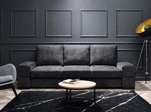 cechy do spania codziennego, sprężyna falista, z poduchami, sprężyna bonellowa, pojemnik na pościel Kolorystyka kolor korpusu: grafitowy kolor nóżek: czarny przeznaczenie salon, lokal usługowy, biuro styl wnętrzarski nowoczesny, industrialny Wymiary i waga długość: 100 cm szerokość: 230 cm wysokość: