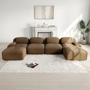 Sofa modułowa w kształcie litery U, sztruks, nie wymaga montażu, tapicerka wysoce elastyczna, brązowa