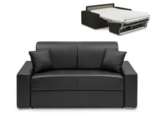 Kanapa 2-osobowa z ekspresowym mechanizmem rozkładania z ekoskóry EMIR - Kolor: czarny - Miejsce do spania: 120 cm - Materac 22 cm z pamięcią kształtu