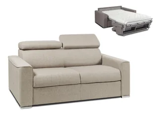 Kanapa 2-osobowa z ekspresowym mechanizmem rozkładania z tkaniny VIZIR - Kolor: beżowy - Miejsce do spania: 120 cm - Materac 14 cm