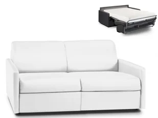 Kanapa 3-osobowa z ekspresowym mechanizmem rozkładania z ekoskóry CALIFE - Kolor: biały - Wymiary miejsca do spania: 140 cm - Materac 18 cm