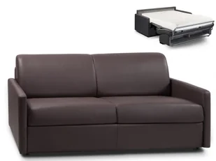 Kanapa 3-osobowa z ekspresowym mechanizmem rozkładania z ekoskóry CALIFE - Kolor: brązowy - Wymiary miejsca do spania: 140 cm - Materac 18 cm