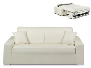 Kanapa 3-osobowa z ekspresowym mechanizmem rozkładania z ekoskóry EMIR - Kolor: biały - Miejsce do spania: 140 cm - Materac 22 cm z pamięcią kształtu
