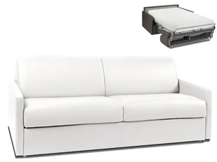 Kanapa 4-osobowa z ekspresowym mechanizmem rozkładania z ekoskóry CALIFE - Kolor: biały - Wymiary miejsca do spania: 160 cm - Materac 22 cm z pamięcią
