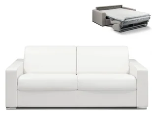Kanapa 4-osobowa z ekspresowym mechanizmem rozkładania z ekoskóry CALITO - Kolor: biały - Wymiary miejsca do spania: 160 cm - Materac 14 cm