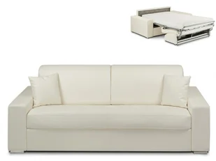 Kanapa 4-osobowa z ekspresowym mechanizmem rozkładania z ekoskóry EMIR - Kolor: biały - Miejsce do spania: 160 cm - Materac 14 cm