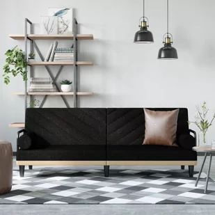 vidaXL Rozkładana kanapa z podłokietnikami, czarna, obita tkaniną