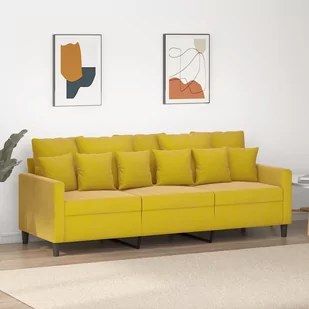 vidaXL Sofa 3-osobowa, żółty, 180 cm, tapicerowana aksamitem
