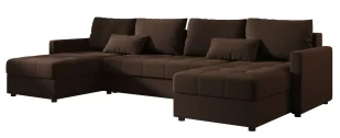 Dlaczego właśnie ? narożnik w kształcie litery „U” – idealny do wspólnego spędzania czasu wygodne siedzisko i cztery miękkie poduszki oparciowe wypełnione zmieloną pianką dwie dodatkowe poduszki dekoracyjne w zestawie funkcja spania z dużą powierzchnią 265 × 130 cm praktyczny pojemnik na pościel – zawsze pod ręką wolnostojąca konstrukcja z tyłem obitym tkaniną solidny stelaż z drewna i płyty wiórowej komfortowe wypełnienie z pianki T30 odpornej na odkształcenia stabilne, okrągłe nóżki z tworzywa sztucznego (wys. 4,5 cm) Materiały i wykonanie Tkanina - wysokogatunkowa tkanina Alcantar Pro Elior produkowana z dokładnie wyselekcjonowanych ultramikrowłókien o objętości aż do 24-razy drobniejszej od ludzkiego włosa. Wypełnienie z pianki elastycznej - gwarantuje sprężystość, komfort i trwałość nawet przy intensywnym użytkowaniu. Sprężyna falista - zapewnia elastyczne podparcie siedziska, zwiększając trwałość i komfort użytkowania narożnika. Solidna konstrukcja - drewniany stelaż i mocne elementy nośne zapewniają stabilność oraz długowieczność mebla. Wymiary: Głębokość: 140 cm, szerokość: