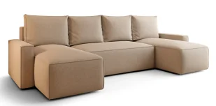 Przestronne moduły siedziskowe - zapewniają komfort zarówno podczas codziennego relaksu, jak i wieczornych spotkań w gronie bliskich. Funkcja spania o dużej powierzchni - po rozłożeniu sofa tworzy równą, wygodną przestrzeń idealną do snu, odpoczynku czy wspólnego oglądania filmów. Szerokie, stabilne podłokietniki - dodają bryle solidności, a jednocześnie stanowią wygodne podparcie dla rąk czy książki. Miękkie poduszki oparciowe - otulają i dopasowują się do ciała, tworząc wyjątkowo wygodną strefę wypoczynku. Nowoczesna, minimalistyczna estetyka - prosta linia bez zbędnych ozdobników sprawia, że sofa świetnie odnajduje się w różnych aranżacjach: