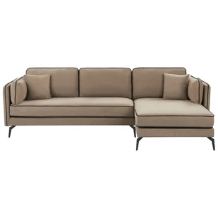głębokość 157 cmKolor JasnobrązowyKształt Litera LLiczba osób 3Materiał metal poliesterMateriał nóg MetalSzerokość 268 cmUstawienie LewostronnyWysokość 88 cm
