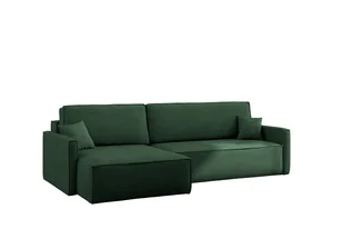 Narożnik Carlos L – funkcjonalność, wygoda i przytulna struktura sztruksowej tkaniny Poso Jeżeli szukasz mebla, który połączy w sobie elegancki minimalizm, wygodę na najwyższym poziomie oraz praktyczne rozwiązania do codziennego użytku, narożnik Carlos L będzie doskonałym wyborem. Zaprojektowany z myślą o różnorodnych stylach wnętrz – od nowoczesnych salonów po przytulne przestrzenie w stylu skandynawskim – Carlos L łączy w sobie prostą, acz wyrafinowaną formę z szeroką gamą funkcji, które sprawiają, że użytkowanie staje się przyjemnością. Przekształć salon w komfortową strefę relaksu Połącz relaks i wygodę z funkcją spania w narożniku Carlos L – za pomocą precyzyjnego automatu opartego na sprężynach falistych typu A w kilka chwil przekształcisz sofę w wygodne, dwuosobowe łóżko, a ukryty pod siedziskiem pojemnik na pościel pomieści kołdry, poduszki i koce, co czyni narożnik Carlos L doskonałym rozwiązaniem zarówno do codziennego wypoczynku, jak i na niespodziewanych gości. Ergonomia narożnika Carlos L to siedzisko na wysokości 40 cm i głębokości 50 cm, wypełnione sprężynami falistymi oraz pianką HR T31, gwarantując optymalne podparcie kręgosłupa i elastyczne dopasowanie do sylwetki, a dodatkowe poduszki z mieszanki silikonu i pianki z zamkami pozwalają na pełne dostosowanie oparcia do różnych potrzeb – od wieczornego seansu filmowego po poranną lekturę czy pracę z laptopem. Nowoczesna lekkość formy i dopracowane detale Carlos L to przykład mebla, który mimo swojej funkcjonalności zachowuje harmonijny, minimalistyczny wygląd.