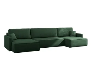Narożnik Carlos w kształcie U – funkcja spania, najwyższy komfort i szlachetna struktura sztruksu Poso Jeśli szukasz mebla, który łączy elegancki minimalizm, najwyższy komfort i praktyczną funkcjonalność w codziennym użytkowaniu, narożnik Carlos będzie doskonałym wyborem. Zaprojektowany z myślą o różnych stylach wnętrz – od nowoczesnych salonów po inspirowane stylem skandynawskim przestrzenie relaksu – narożnik Carlos łączy wyraziste, proste linie z wieloma funkcjami, dzięki którym korzystanie z niego staje się prawdziwą przyjemnością. Przekształć swój salon w oazę komfortu Odkryj pełnię relaksu z funkcją spania w narożniku Carlos – precyzyjny mechanizm oparty na sprężynach falistych typu A pozwala w kilka sekund zamienić sofę w wygodne, dwuosobowe łóżko. Duży pojemnik na pościel pod siedziskiem pomieści koce, poduszki oraz pledy, co sprawia, że narożnik Carlos sprawdzi się zarówno na co dzień, jak i podczas niespodziewanych wizyt gości. Ergonomia mebla została zoptymalizowana dzięki 40 cm wysokości siedziska i 50 cm głębokości, a połączenie sprężyn falistych z pianką HR T31 zapewnia doskonałe podparcie kręgosłupa.