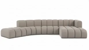 nowoczesny, designerski, premium Układ: moduł półokrągły + moduł z szezlongiem Komfort: miękkie, sprężyste siedzisko, wygodne oparcie Przeznaczenie: salon, open space, przestrzenie nowoczesne i luksusowe Wymiary: Długość całkowita: